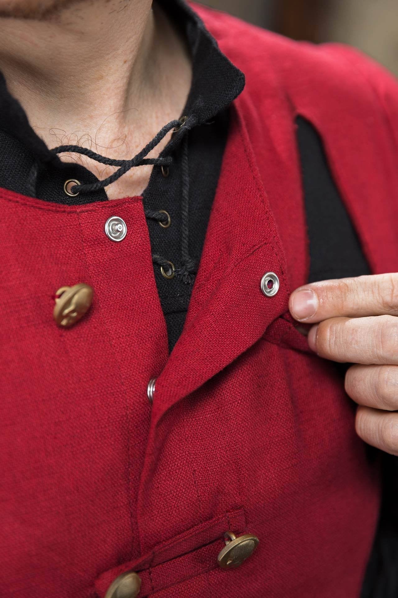 Perfekt für LARP, Cosplay und immersive Warhammer-Erlebnisse strahlt dieses Imperial Doublet Typ B in Dunkelrot Macht aus und ist ein Muss für Krieger, Adlige und Kommandanten gleichermaßen.