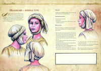The authors present exemplary historical sources which form the foundation for their interpretations and also give advice on how to wear the headdresses. The sources for the sewing instructions range from early medieval pictures found in the Maciejowski Bible and the Codex Manesse to High Middle Ages archeological findings from London and late Middle Ages findings from Kempten in the Allgaeu, Germany.